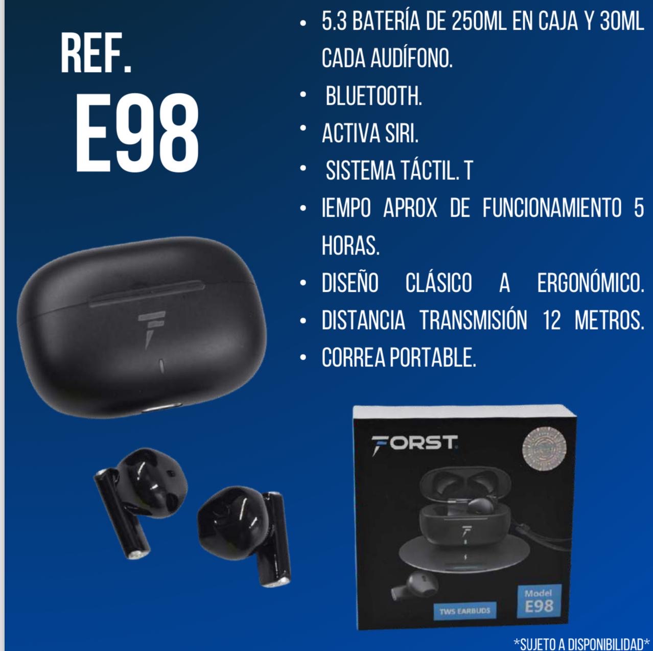 - Auriculares inalámbricos E98 TWS, cascos deportivos con Bluetooth 5,3, Control táctil, micrófono impermeable, auriculares de música con estuche de carga