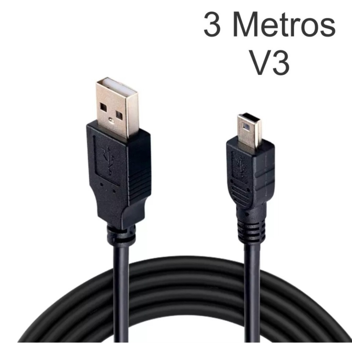 • Cable USB para mini USB de 5 pines 2.0, 3,0 metros, hasta 480 Mbps, color negro