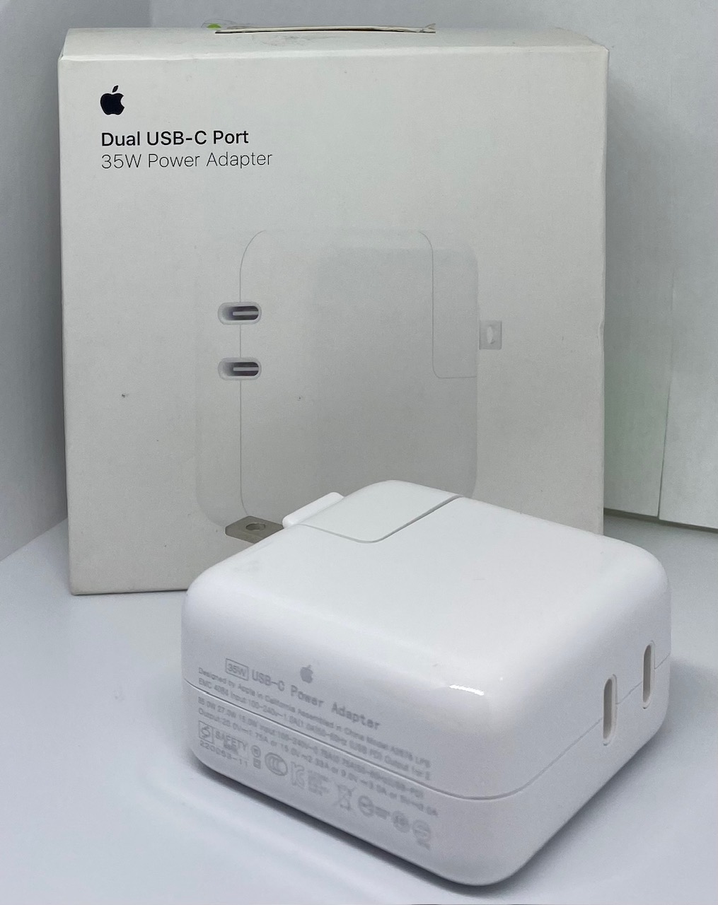 El adaptador de corriente compacto de 35 W con dos puertos USB-C