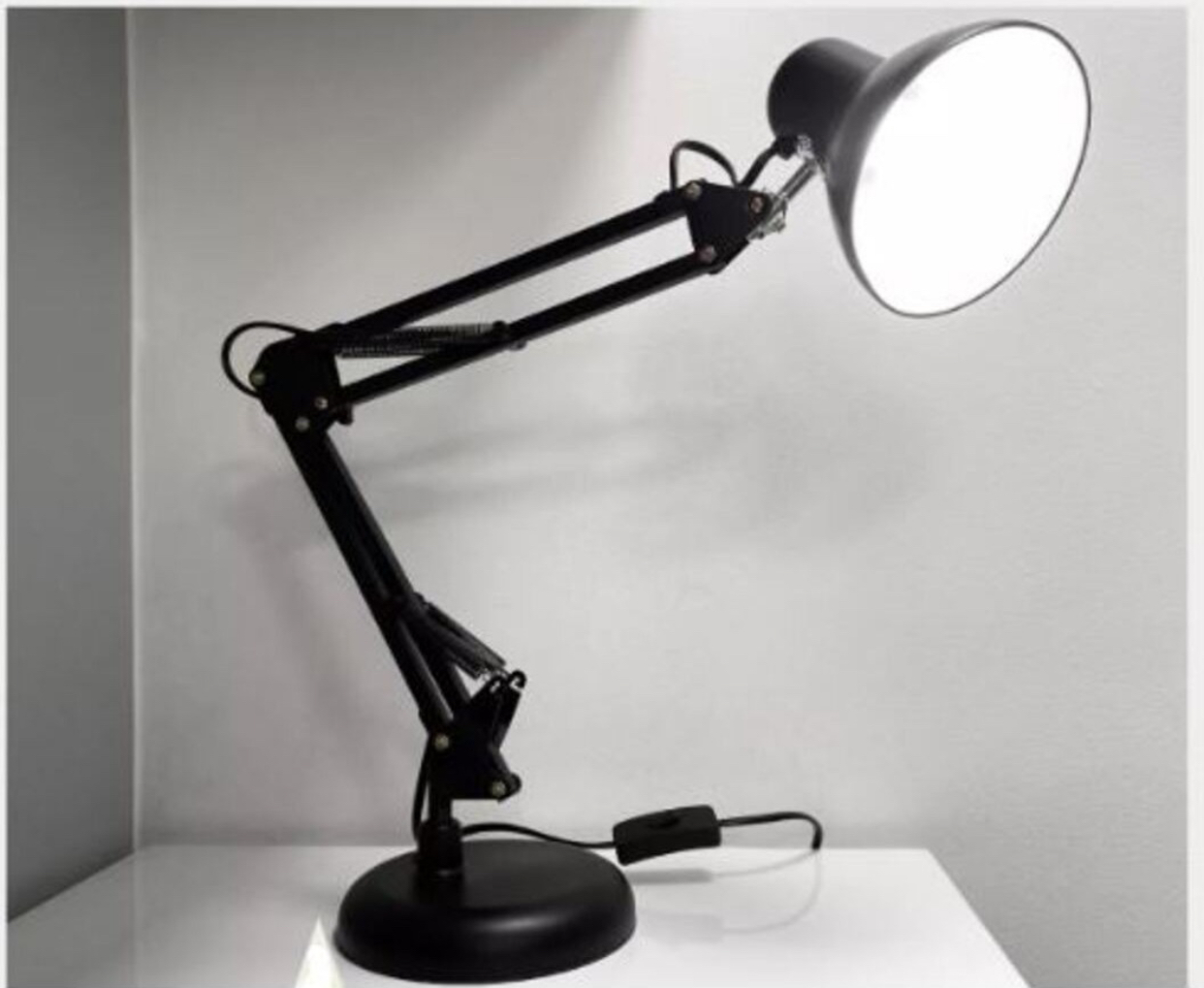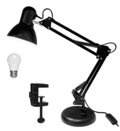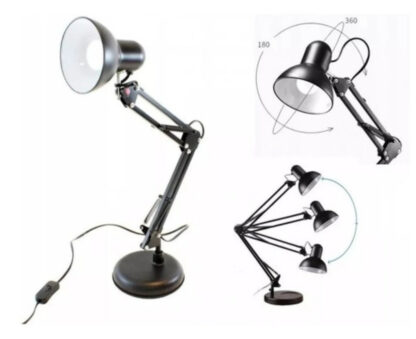 Con una estructura de metal resistente y una pantalla de aluminio, esta lámpara no solo es duradera sino también un complemento estético para cualquier escritorio o mesa de trabajo. Su diseño articulado te permite ajustar la dirección de la luz con precisión, mientras que su base estable asegura un soporte firme en cualquier superficie.