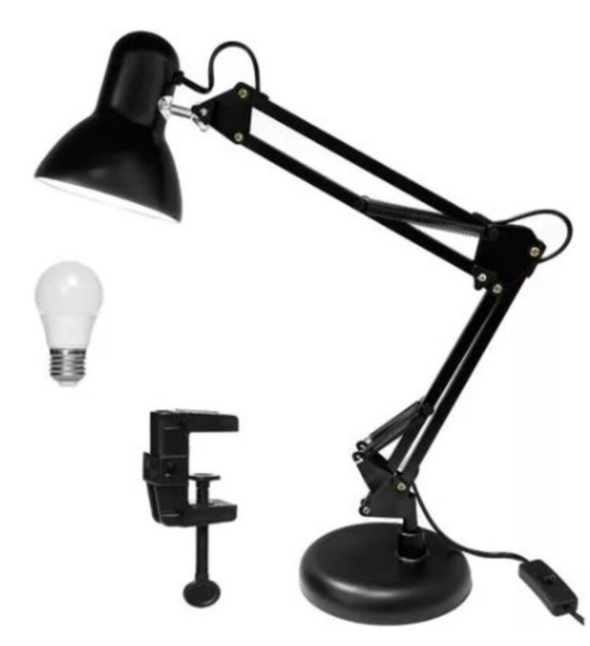 - Lampara De Escritorio Doble Uso Articulada Pie + Soporte Color De La Estructura Negra