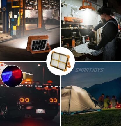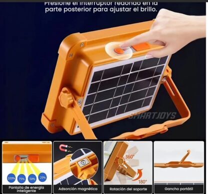 Recargable con energía solar y USB: este foco de construcción recargable con batería se puede cargar con energía solar y con un cable USB, de bajo consumo y respetuoso con el medio ambiente. Además, se puede utilizar como banco de energía para cargar tus dispositivos electrónicos como teléfonos móviles, tabletas y otros dispositivos con entrada micro USB.