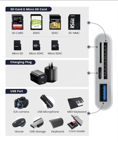 ADAOTADOR LECTOR OTG DE TARJETAS PAR IPHONE IPAD